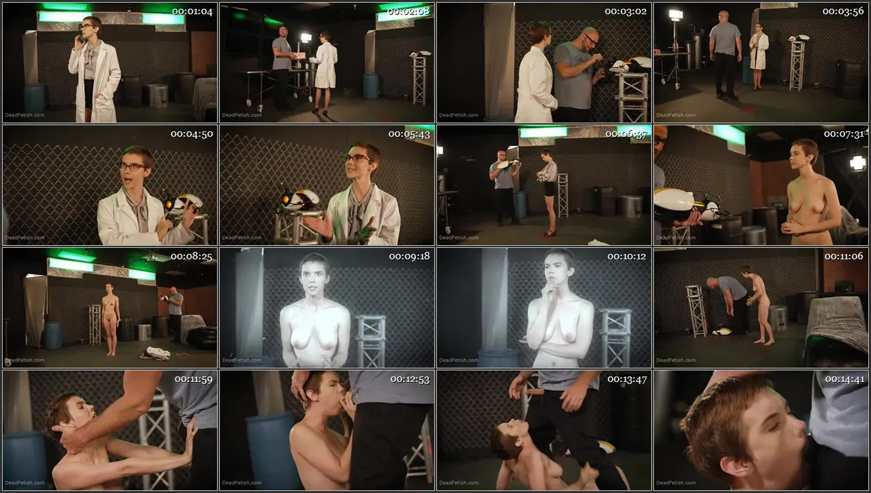 The timer ends and she is brought back to her own dimension where she is very excited and does not notice Martin’s odd behavior. It is only after he attacks her that she realizes things have gone very badly and the ghost has possessed Martin. Now Martin, the evil, and apparently horny entity in control, sexually assaults Dr Tillinghast. He forces her to suck his cock, and rapes her in multiple positions around the studio. Finally, after climaxing in the doctor, he grabs her neck and begins to strangle her. She struggles against him, but the ghost has control of Martin and his muscles, which are no match for the petite, weak, parapsychologist and quantum physicist. She struggles for a long time, but eventually, her body starts spasming as her face contorts and her tongue lashes out–eyes wide in terror. And in the end, she is murdered by the very thing she was hoping to find. Martin sets her in the middle of the floor, then beams her through the portal, essentially disappearing her forever. Then he grabs the ITC and heads out to wreak havoc in the world.